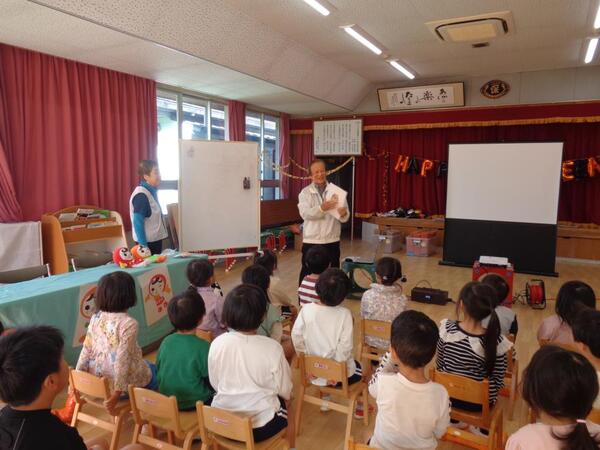 | 幼年消防クラブ員として火の用心の町周りや地域の老人会に訪問し「火事には気をつけてね」と注意喚起をするなど防災活動に取り組みました。町周りをしていると、子ども達の声を聞きつけて応援して下さる方もおられました。1月10日には、令和8年彦根市消防出初式に参加し、ステージで演技を披露する予定です。防災教育の一環として頑張りたいと思います。 | ||